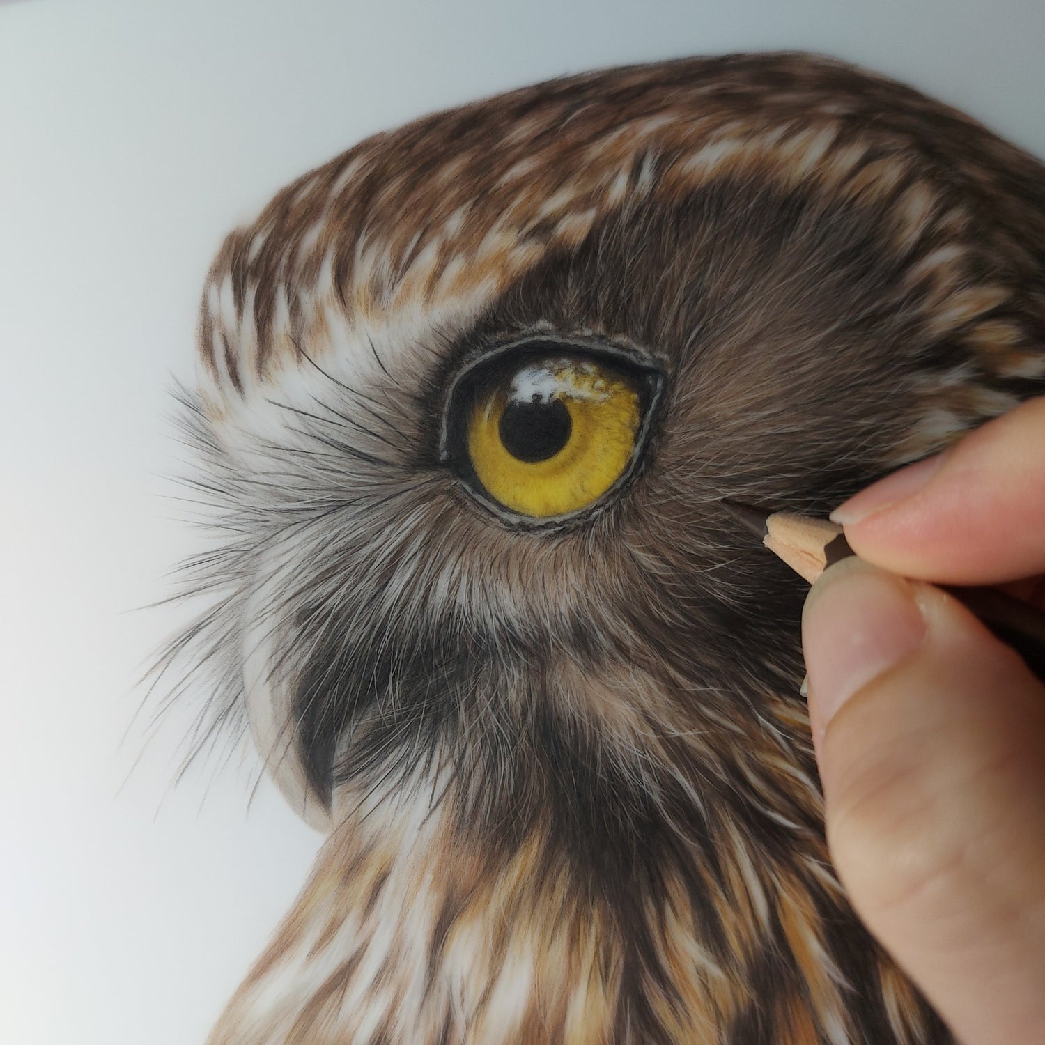 Working primarily in coloured pencil, Joanne creates original artworks that explore the quiet challenge of bringing NZ native birds, wildlife, and flora to life on paper. Inspired by subtle details found in nature, each piece is built through a thoughtful, layered process, with the occasional touch of whimsy.