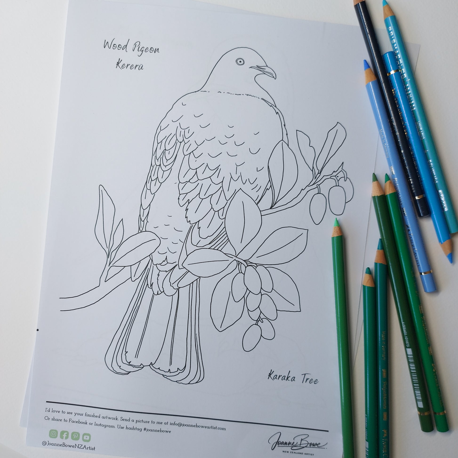 FREE Printable Colouring in Page. Kereru / Wood Pigeon Drawing